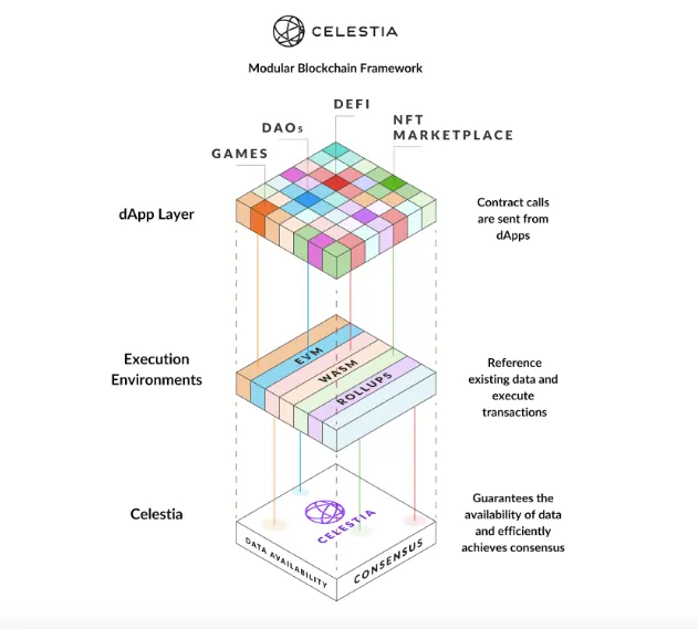 Celestia is a new revolutionary blockchain that allows for more freedom and sovereignity to it's dApp creators. Celestia changes the landscape for crypto projects by allowing them to choose the language they write their programming in. This structuring allows application creators to focus on logic of their apps, while Celestia handles consensus.&#x20;